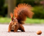 Zuerst waren die drei Eichhörnchen sehr vorsichtig und wagten sich nicht zu mir. Aber später waren sie mutiger und kamen auf Berührungsnähe heran. Dann war es soweit und ich konnte ihr Fell berühren. Es war sehr weich und angenehm auf der Haut. Sie setzten sich possierlich auf ihre Hinterpfoten und bewegten die Vorderen. Aber irgendwie konnte ich mit ihnen nicht so spielen, wie mit Speedy.